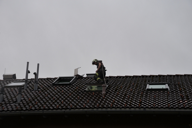 Nach dem Vollbrand von vergangener Nacht waren noch kleinere Brand- und Glutnester abzulöschen. Neuerlich kam ein Bagger zum Einsatz, um die Trümmerteile aus dem Weg zu räumen und uns einen sicheren Zugang zur Brandruine zu ermöglichen.