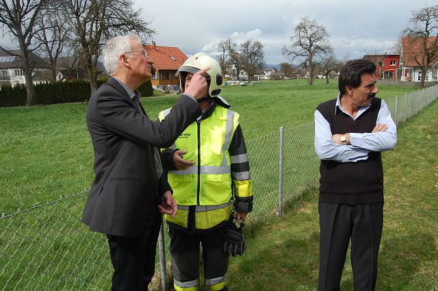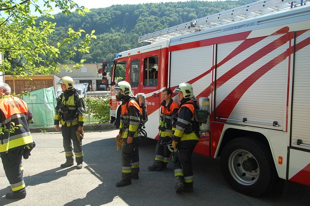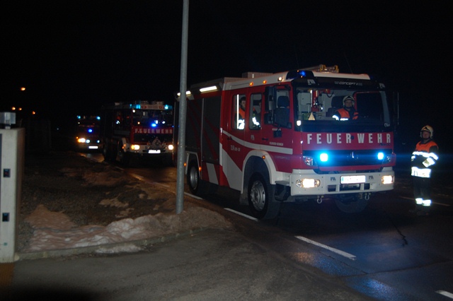 Die Feuerwehr Gisingen war auf Grund der Zugsübung mit dem gesamten Löschzug (KDOF, TLF, LFB-A und VF) vor Ort.