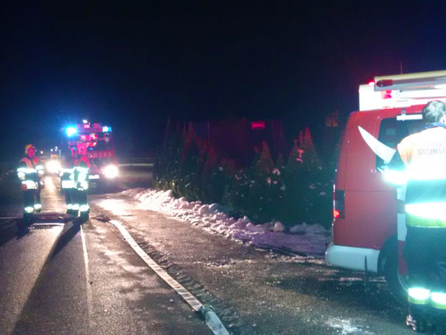 Die Feuerwehr Gisingen stand mit zwei Fahrzeugen (KDOF und TLF 3000/200) und 20 Mann ca. 15 Minuten im Einsatz.