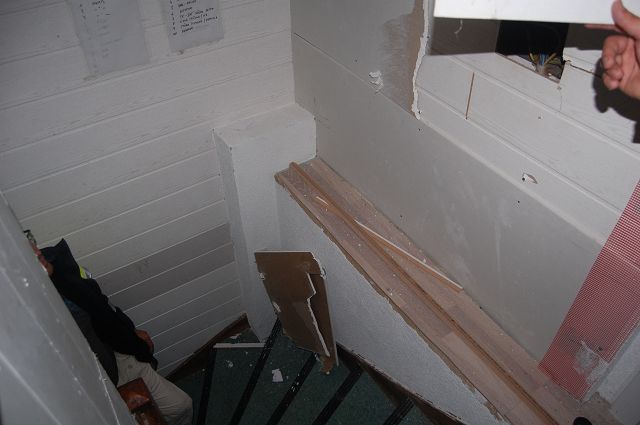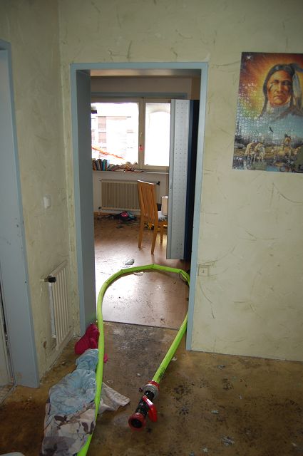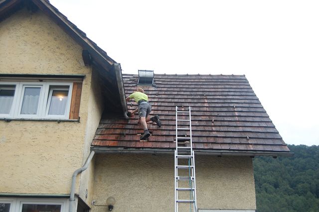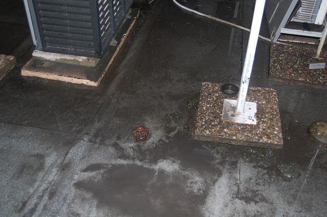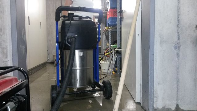 Das Dach wurde ausgeleuchtet und mittels Nasssaugern trocken gelegt.