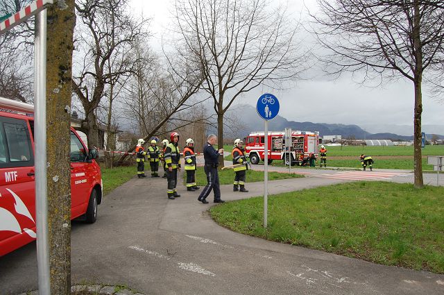 Die Feuerwehr Gisingen war mit 25 Mann und drei Fahrzeugen (KDOF, LFB, VF) rund 1,5 Stunden im Einsatz. Die Stadtpolizei Feldkirch war mit einem Fahrzeug und 2 Mann vor Ort.