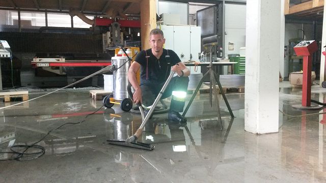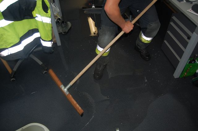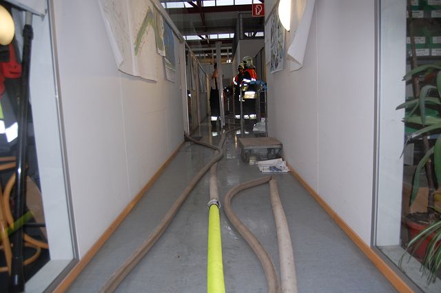 Am Montag, den 21.09.2015, wurde im Zuge der 1. Zugsprobe des heurigen Herbstprobenhalbjahres ein Wasserrohrbruch in einem Firmengebäude festgestellt. Das Wasser wurde mittels Nasssaugern abgepumpt bzw. durch Abflüsse mittels Wasserschiebern abgeleitet. Der zuständige Gebäudeverwalter war ebenfalls vor Ort.
