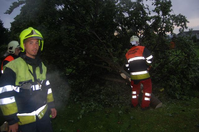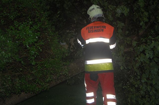 Am Samstag, den 06. Juni 2015, wurde die Feuerwehr Gisingen um 19:53 Uhr bereits zum dritten Einsatz an diesem Tag gerufen. Im Alten Kirchweg stürzte ein Baum im Garten einer Wohnanlage um und drohte auf das Haus zu rutschen. Der Baum wurde mittels Kettensäge zerkleinert und die Gefahr beseitigt.