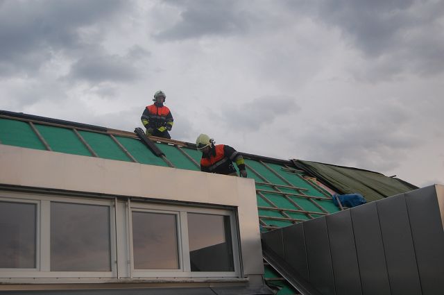 Am Samstag, den 06. Juni 2015, wurde die Feuerwehr Gisingen um 19:10 Uhr in die Sägerstraße beim ehemaligen Hotel Büchel zu einem technischen Einsatz gerufen. Aufgrund starker Windboen löste sich eine Abdeckplane am Dach und wehte hoch in die Luft. Die Abdeckplane wurde von der Feuerwehr Gisingen wieder zurück aufs Dach gebracht und befestigt.