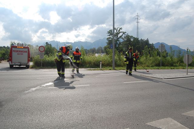 Am Dienstag, den 12.05.2015, um 08:56 Uhr wurde die Feuerwehr Feldkirch-Gisingen in die Ringstraße alarmiert. Grund für die Alarmierung war ausgelaufenes Öl (vermutlich aus einem PKW). Das ausgelaufenen Öl wurde durch das Auftragen von Bindemittel eingedämmt und anschließend wurde die Straße durch eine Kehrmaschine der Stadt Feldkirch gereinigt und die Schadstoffe fachgerecht entsorgt.