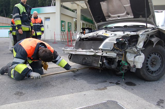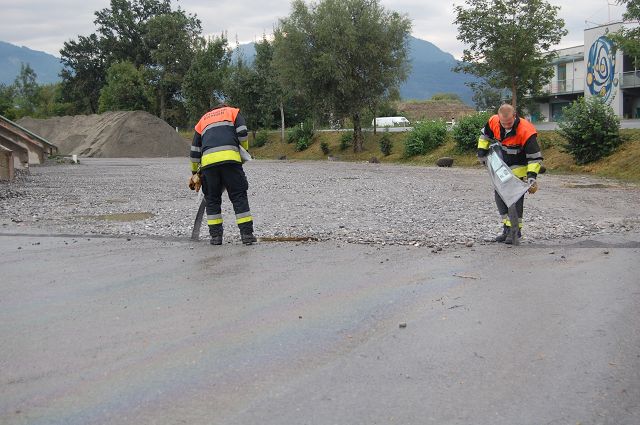 Am Freitag, den 04.09.2015 um 07:36 Uhr, wurde die Feuerwehr Gisingen zu einem Firmengelände an der L 52 gerufen. Ein unbekannter PKW war vermutlich auf der L 52 in Richtung Meiningen unterwegs, kam von der Fahrbahn ab und und durchbrach die Umzäunung des Firmengeländes. Durch den Unfall verlor der PKW eine große Menge Treibstoff und Öl wodurch der asphaltierte Platz verunreinigt wurde. Die ausgelaufenen Flüssigkeiten wurden mittels Bindemittel und Bioversallöschern gebunden. Durch die angeforderte Kehrmaschine der Stadt Feldkirch wurden die ausgelaufenen Gefahrenstoffe aufgesaugt und anschließend entsorgt.