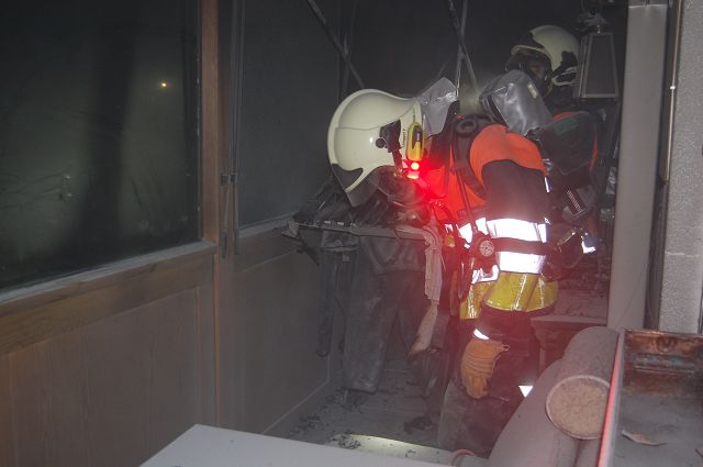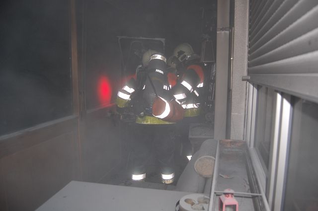 Noch vor dem Jahreswechsel wurden die Feuerwehren Gisingen, Altenstadt und Feldkirch-Stadt am 31. Dezember 2015 um 19:52 Uhr von der Rettungs- und Feuerwehrleitstelle zu einem Zimmerbrand nach Gisingen in die Hämmerlestraße zum 12 stöckigen Hochhaus gerufen. Auf dem Balkon einer im 4. Obergeschoß befindlichen Wohnung kam es vermutlich aufgrund eines technischen Defektes an einem Kühlschrankes zu einem Brandausbruch. Die Bewohner und eine Polizeipatrouille konnten das Feuer mit Hilfe von Handfeuerlöschern bis zum Eintreffen der Feuerwehr unter Kontrolle bringen. Unter schwerem Atemschutz wurde dann der Brand rasch lokalisiert, mit Hilfe der vorhandenen Steigleitung und einer Löschleitung schnell abgelöscht und die Brandstelle mit Hilfe einer Wärmebildkamera auf weitere Hitzequellen untersucht. Noch vor dem Eintreffen der Feuerwehr am Einsatzort hatte die Evakuierung des Wohnhauses begonnen, welche leider eine verletzte Person nach sich zog und von der Rettung ins LKH Feldkirch gebracht werden musste.