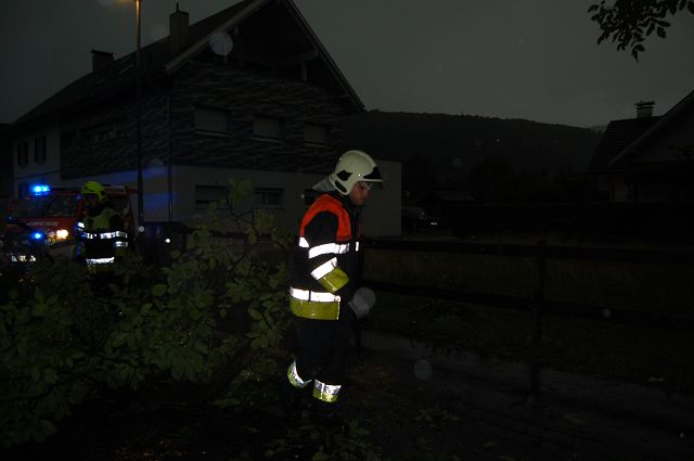 Der Einsatzleiter stellte den abgebrochenen Baum fest und ordnete eine Komplettsperre des Straßenzuges an. Um Gefahren für Einsatzkräfte und Material durch mögliche weitere umfallende Bäume zu vermeiden, wurden die Anrainer durch uns informiert, dass mit der Entfernung des Baumstammes auf ein Beruhigung des Wetters zugewartet wird und die Straße gesperrt bleibt. Nach Wetterbesserung wurde der Baumstamm mittels Kettensäge zerschnitten, von der Straße gezogen und die Straße gesäubert.