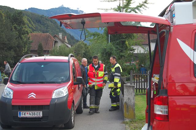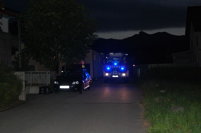 Mitten unter den Aufbauarbeiten für das Dorffest war die Feuerwehr Gisingen mit 2 Fahrzeugen (KDOF und VF mit Anhänger) rund eine 3/4 Stunde im Einsatz. Die Stadtpolizei Feldkirch war mit einem Fahrzeug und zwei Mann vor Ort.