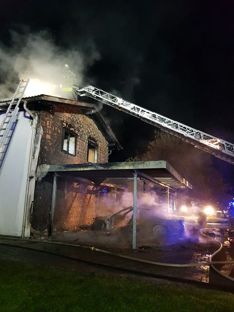 In der Nacht auf Montag, den 25. September 2017, wurden die Einsatzkräfte der Feuerwehr Gisingen um kurz nach 2 Uhr zur Unterstützung bzw. nachbarlichen Löschhilfe in die Novalgasse nach Nofels gerufen. Hier kam es gegen 01:22 Uhr zu einem PKW Brand in einem Carport, welches beim Eintreffen der Feuerwehr Nofels bereits in Vollbrand stand. Nachdem die ersten Löschversuche durch die Feuerwehren Nofels und Tosters durchgeführt wurden, das Feuer sich jedoch rasch auf das Wohnhaus und den Dachbereich ausbreitete, wurden die Feuerwehr Feldkirch-Stadt mit der Drehleiter und die Feuerwehr Gisingen mit zusätzlichen Atemschutzträgern nachalarmiert.