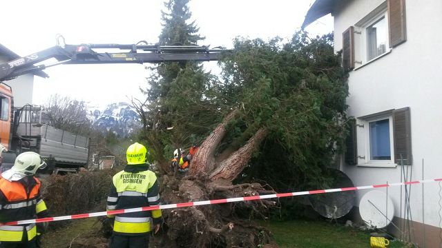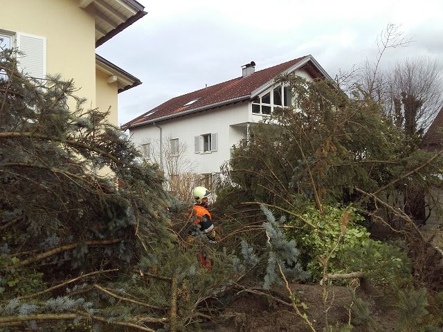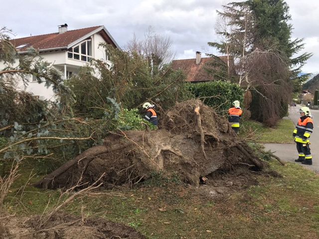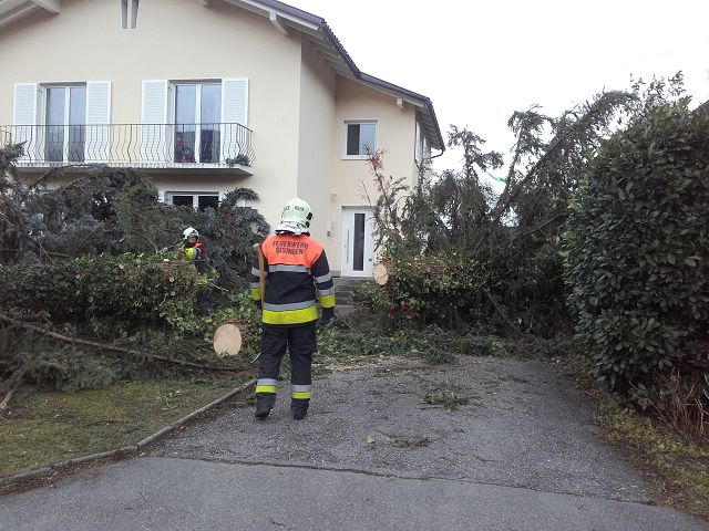 Am Donnerstag, den 14.12.2017 um 14:08 Uhr, wurde das Kommando der Feuerwehr Gisingen zur Abklärung in die Kapfstraße gerufen. Auf Grund des heftigen Sturms der letzten Tage war ein Baum teilweise entwurzelt worden und die Besitzerin hatte Angst, dass dieser auf das Nachbarshaus fallen zu drohte.