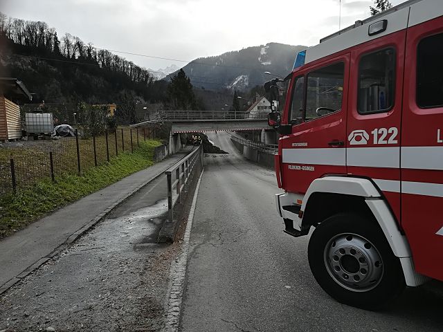 Die Feuerwehr Gisingen war mit zwei Fahrzeugen (KDOF und LFBA) und 20 Mann bei Starkregen rund eine halbe Stunde im Einsatz. Die Stadtpolizei Feldkirch war mit einem Fahrzeug und zwei Mann vor Ort.
