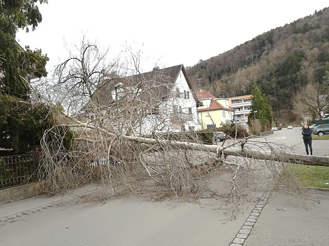 Am Mittwoch den 20.12.2017 um 15:10 Uhr, wurde das Kommando der Feuerwehr Gisingen zur Abklärung in die Hauptstraße gerufen. Auf Grund des heftigen Sturms der letzten Tage war ein Baum teilweise entwurzelt worden und drohte auf ein Wohnhaus zu fallen.