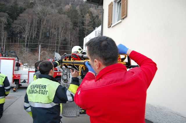 Am Donnerstag, den 31. Jänner 2019 wurden die Feuerwehren Gisingen und Feldkirch-Stadt zur Unterstützung für den Rettungsdienst in die Kapfstraße alarmiert. Aufgrund eines medizinischen Notfalles musste ein 95-jähriger Mann mit Hilfe der Drehleiter aus Feldkirch aus dem 1. Obergeschoss ins Freie gebracht bzw. gerettet werden. Aufgrund der Alarmierung des Sondereinsatzmittels Drehleiter rückte die Feuerwehr Gisingen nur mit dem Kommandofahrzeug aus und unterstützte die Sanitäter sowie die Kameraden aus Feldkirch bei Ihrer Arbeit. Der Patient konnte durch die Drehleiter rasch zu Boden gebracht und an den Rettungsdienst wieder übergeben werden.