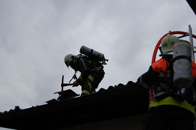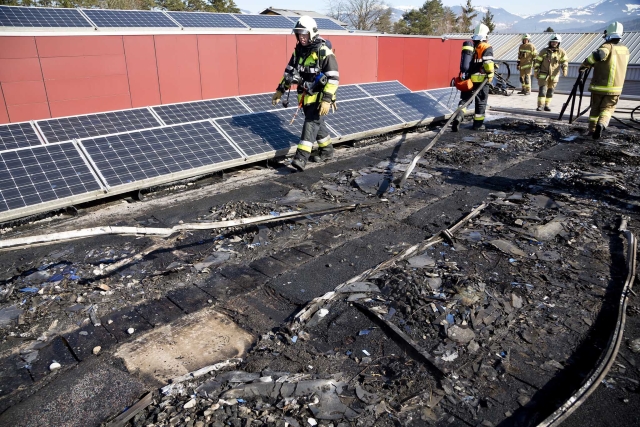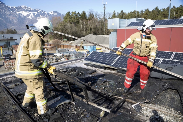 Am Montag, den 25. Februar 2019, kam es gegen 12:15 Uhr zu einem Brand auf dem Dach einer Tischlerei in Nofels. Bereits auf der Anfahrt erhöhte der Einsatzleiter das Stichwort und alarmierte so die Feuerwehren aus Gisingen und Feldkirch-Stadt mit der Drehleiter. Aus bislang noch ungeklärter Ursache gerieten die Photovoltaikanlage und die Dachkonstruktion in Brand und mussten von Atemschutzträgern abgelöscht werden. Die Feuerwehr Gisingen unterstützte die Kameraden aus Nofels mit zusätzlichen Atemschutzträgern sowie beim Abdecken der darunter befindlichen Maschinen.