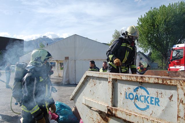 In der Nacht von Donnerstag auf Freitag, 30. August 2019, wurden insgesamt 120 Einsatzkräfte aus Gisingen, Altenstadt, Nofels, Feldkirch-Stadt und Rankweil um kurz nach 3 Uhr morgens durch die Rettungs- und Feuerwehrleitstelle zu einem Großbrand bei der Firma Loacker Recycling im Industriegebiet Münkafeld alarmiert. Vermutlich aufgrund von Selbstentzündung kam es zu einem Brand in zwei Industrie- und Gewerbeabfallboxen, welche beim Eintreffen am Einsatzort bereits in Vollbrand standen. Durch das schnelle und gezielte Eingreifen der rund 120 Männer und Frauen konnte das Feuer rasch unter Kontrolle gebracht und eine Ausbreitung verhindert werden. Um alle Glutnester ablöschen zu können, mussten im Anschuss daran mit Hilfe eines Greif-Baggers die beiden Müllhaufen auseinander genommen und schichtweise abgelöscht werden. Wegen der starken Rauchentwicklung und der daraus resultierenden Nullsicht mussten die Arbeiten wiederholt unterbrochen werden. Mehrere anliegenden Wohnungen mussten durch die Kräfte der Polizei sicherheitshalber evakuiert werden.