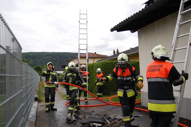 Am Donnerstag, den 13. Juni 2019 wurde die Feuerwehr Gisingen um 21:30 Uhr aufgrund eines Balkonbrandes, welcher auf die Fassade überzugreifen drohte, von der Rettungs- und Feuerwehrleitstelle zur nachbarlichen Löschhilfe in den Blütenweg nach Altenstadt alarmiert. Noch während der Anfahrt zum Einsatzort kam bereits die Meldung, dass der Brand bereits durch Bewohner mit Hilfe eines Gartenschlauches gelöscht werden konnte. Die Kameraden aus Altenstadt öffneten noch ein Teil der Fassade um vorhandene Glutnester abzulöschen. Ohne weitere Maßnahmen treffen zu müssen, konnten die Einsatzkräfte der Feuerwehr Gisingen um kurz vor 22 Uhr bereits wieder ins Feuerwehrhaus nach Gisingen einrücken.