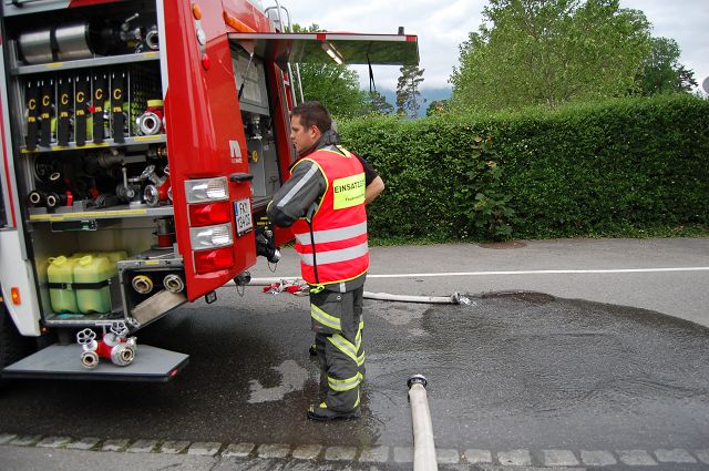 Die Feuerwehr Gisingen war mit zwei Fahrzeugen (LFB und VF) und 23 Mann rund eine halbe Stunde im Einsatz.