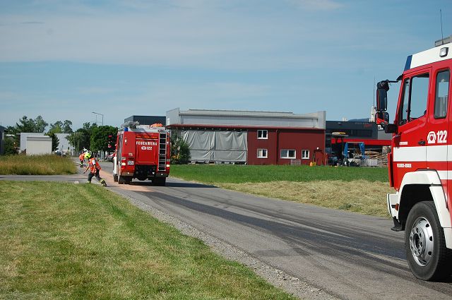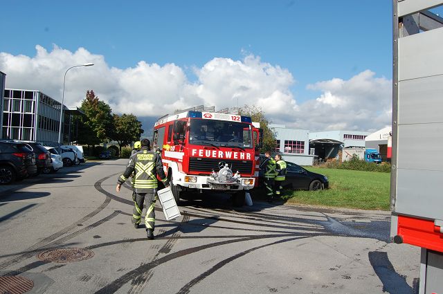 Am Donnerstag, den 03. Oktober 2019 wurde die Feuerwehr Gisingen um kurz nach 11 Uhr durch die Rettungs- und Feuerwehrleitstelle zu einem technischen Einsatz in den Leusbündtweg alarmiert. Ein LKW hat sich den Dieseltank bei einer Laderampe aufgeschlitzt, wodurch rund 250 Liter Dieselkrafstoff ausgelaufen sind. Die austretenden Betriebsstoffe wurden aufgefangen und die Verunreinigung auf der Straße wurde mittels Bindemittel beseitigt.