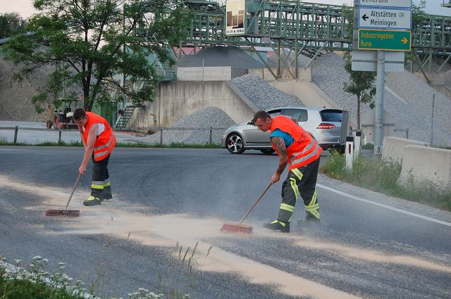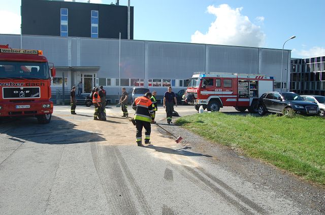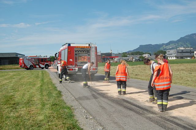 Zur Verhinderung einer Gefährdung der Umwelt und des Straßenverkehrs wurde Bindemittel ausgebracht und eingearbeitet. Die Einsatzstelle wurde im Anschluss durch die Kehrmaschine der Stadt Feldkirch gereinigt und an den Bauhofmitarbeiter übergeben. Der Verursacher der Fahrbahnverunreinigung konnte nicht ausgemittelt werden.