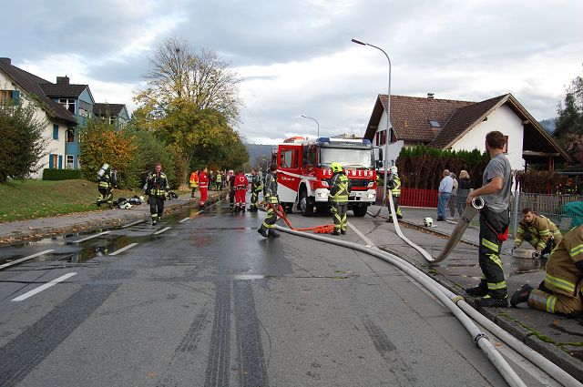 Am Samstag, den 19. Oktober 2019 wurden die Feuerwehren aus Gisingen, Nofels, Tosters und Feldkirch-Stadt um 16 Uhr durch die Rettungs- und Feuerwehrleitstelle zu einem Gebäudebrand in der Rheinstraße in Feldkirch-Nofels alarmiert. Der Einsatzleiter der Feuerwehr Nofels konnte bei seiner Lageerkundung einen Wohnungsbrand im 2. OG, welcher bereits auf den Dachstuhl übergegriffen hatte, feststellen. Die Atemschutztrupps aus Nofels und Gisingen leiteten sofort durch Innenangriffe über das Treppenhaus und über die Schiebeleiter die Brandbekämpfung ein und konnten so den Brand rasch unter Kontrolle bringen. Im weiteren Verlauf wurden dann noch weitere Atemschutztrupps zum Ablöschen von Glutnestern in der Wohnung und im Dachboden eingesetzt.