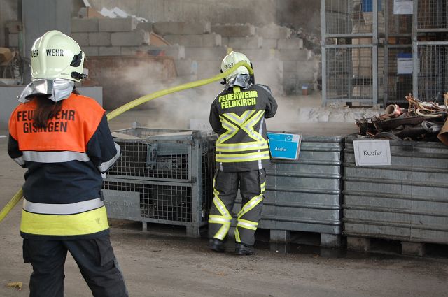 Die Feuerwehr Gisingen war mit dem kompletten Löschzug (KDOF, TLF 3000/200, LFB-A und VF mit TSA) und 42 Mann insgesamt 5,5 Stunden im Einsatz. Außerdem waren die Feuerwehren Altenstadt (3 Fahrzeuge, 20 Mann), Nofels (3 Fahrzeuge, 26 Mann), Feldkirch-Stadt (4 Fahrzeuge, 20 Mann) und Rankweil (4 Fahrzeuge, 24 Mann) am Einsatz beteiligt. Vielen Dank an alle eingesetzten Einsatzkräfte von Rettung, Stadt- und Bundespolizei, Behördenvertreter sowie Mitarbeiter der Firma Loacker Recycling. Am Gebäude entstand erheblicher Sachschaden in unbekannter Höhe.