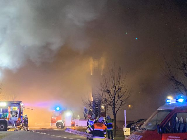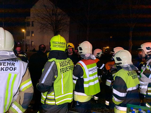 17.12.2019, 02:08 Uhr, erfolgte die Alarmierung zur nachbarlichen Hilfeleistung der Feuerwehr Gisingen. Die Feuerwehren Tosters, Tisis, Feldkirch-Stadt und Nofels standen bereits im Löscheinsatz. In einer dreistöckigen Mehrparteienwohnanlage kam es aus bislang unbekannter Ursache zu einem Brand auf einem Balkon, welcher sich rasch auf den Dachstuhl des Gebäudes ausbreitete. Außerdem wurden die Feuerwehren Götzis (Teleskopmastbühne), Mäder (Atemluftfüllstation), Meiningen (Atemschutzsammelplatz) und die Betriebsfeuerwehr ÖBB (Gleisanlagenüberwachung) alarmiert.