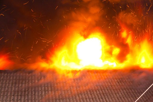 Aufmerksame Nachbarn hatten im Bereich des großflächigen Wohn- und Geschäftsgebäudes Flammen im Dachbereich festgestellt, weshalb diese die Rettungs- und Feuerwehrleitstelle verständigten.