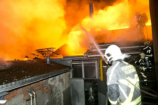 Die Feuerwehr Gisingen stand mit vier Fahrzeugen (KDOF, TLF3000/200, LFB-A und VF) und 52 Einsatzkräften rund 13 Stunden im Dauereinsatz.