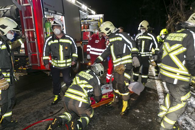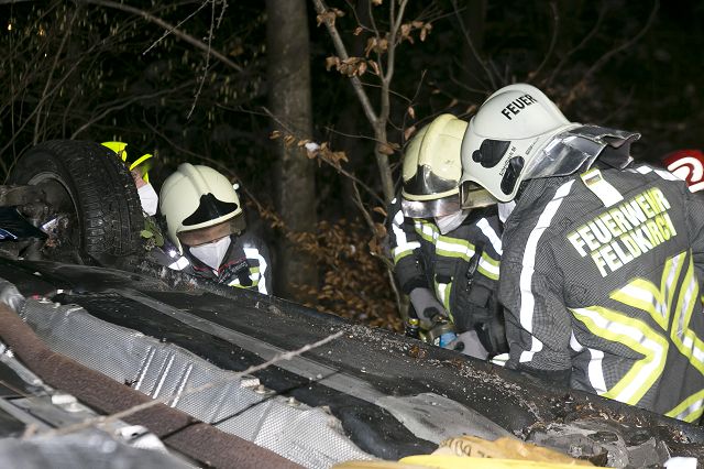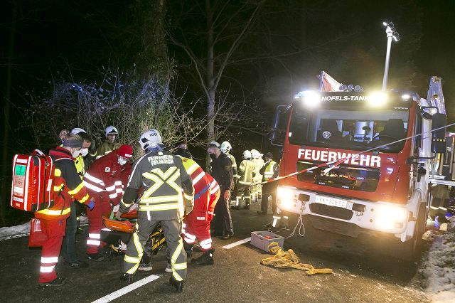 Am Dienstag, den 11. Jänner 2022, um 19.13 Uhr, erfolgte die Alarmierung der Feuerwehren Nofels und Gisingen zu einem schweren Verkehrsunfall in Feldkirch-Nofels. Auf der Bergstraße in Richtung Oberfresch, Höhe Abzweigung Schüttenacker, ist ein Mann mit seinem Fahrzeug abgestürzt und auf dem Dach liegend im steil abfallenden Waldstück hängen geblieben.