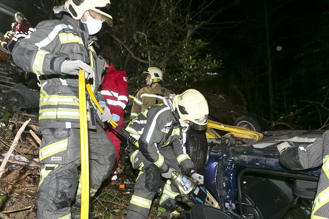 Als Stützpunktfeuerwehr für hydraulische Rettungsgeräte und somit Verkehrsunfälle wurden wir im Sinne der nachbarlichen Hilfeleistung zur Unterstützung für die einsatzleitende Feuerwehr Nofels alarmiert. Beim Eintreffen an der Einsatzstelle stellte sich heraus, dass der Fahrer im abgestürzten Fahrzeug eingeschlossen aber ansprechbar war. Gemeinsam mit dem Notarzt wurde das Unfallfahrzeug erkundet und der Rettungsweg bzw. -modus festgelegt. In Zusammenarbeit mit den Kameraden der Feuerwehr Nofels wurde das Fahrzeug gesichert und der Fahrer anschließend mit hydraulischem Rettungsgerät über eine große Seitenöffnung aus seinem Fahrzeug befreit. Nach der Erstversorgung durch den Rettungsdienst bzw. Notarzt wurde der Patient mittels Schleifkorbtrage über die steile Böschung gerettet, dem Rettungsdienst übergeben und in weiterer Folge ins LKH Feldkirch zur genaueren Untersuchung bzw. weiteren Versorgung eingeliefert.