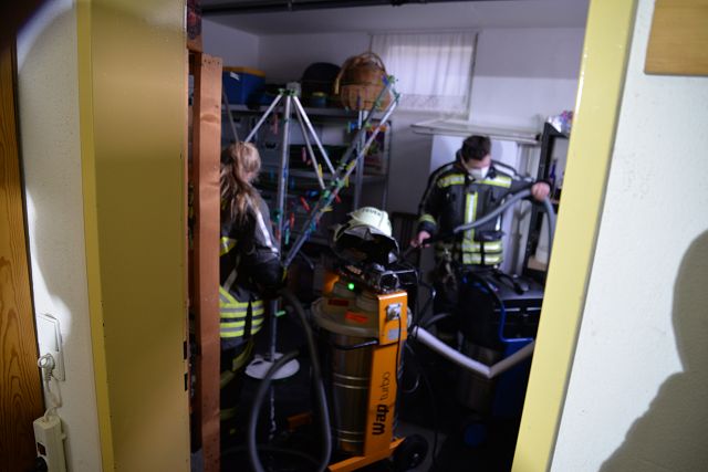 Der Keller war auf Grund der anhaltend starken Regenfälle überflutet worden, das Kanal- und Abwassersystem konnte die Wassermassen nicht mehr aufnehmen. Der Keller wurde mittels Tauchpumpen und Nasssaugern trockengelegt und an die Bewohner übergeben.