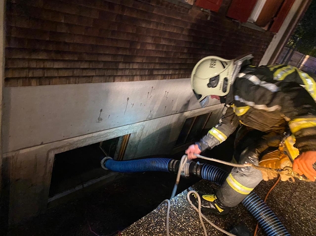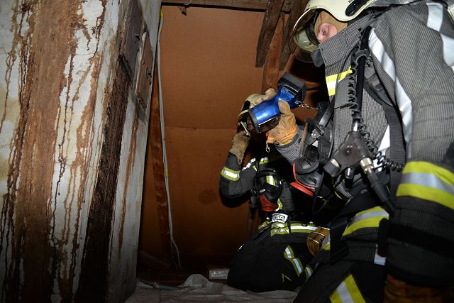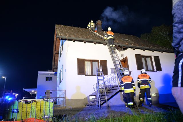 Bei der Erkundung des Einsatzobjekts waren eine starke Rauchentwicklung sowie sichtbarer Funkenflug und Flammen am oberen Ende des Kamins feststellbar. Die Kamintür hatte laut Messung mit der Wärmebildkamera ca. 800 Grad, manche Außenwände des Kamins ca. 150 Grad. Ein umfassender Brandschutz wurde erstellt und die Temperaturentwicklung beobachtet. Weil kein Kaminkehrer erreichbar war, musste das steile Dach mit Leitern zugänglich gemacht und der Kaminhut durch unsere Einsatzkräfte gereinigt werden. Mobiliar und Inventar wurde vorsorglich von der Hitzequelle entfernt, um einen Brandausbruch zu verhindern. Das Ausbrennen des Kamins wurde überwacht und die Einsatzstelle schließlich nach rund 5 Stunden an den Hausbesitzer übergeben.