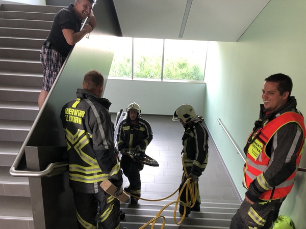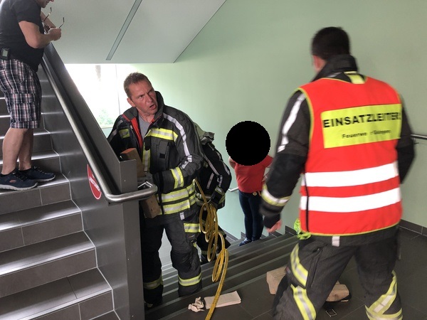 Beim Eintreffen unserer Einsatzkräfte vor Ort wurde via RLF die Stornierung des Einsatzes für alle Feuerwehrkräfte mitgeteilt. Die Person konnte bereits ohne Hilfe der Feuerwehr befreit werden, beziehungsweise war diese nicht eingeklemmt. Die alarmierten Feuerwehrkräfte konnte vom Ort des dringenden Einsaztes wieder ohne Maßnahmen abrücken.