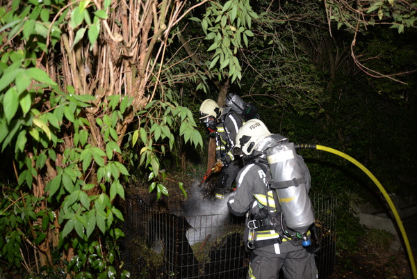 Der Brand wurde unter schwerem Atemschutz abgelöscht, wozu der Komposthaufen teilweise zerteilt werden musste, um Glutnester zu erreichen. Nach der Nachkontrolle mittels Wärmebildkamera konnte Entwarnung gegeben und die Einsatzstelle an die Bewohner übergeben werden.