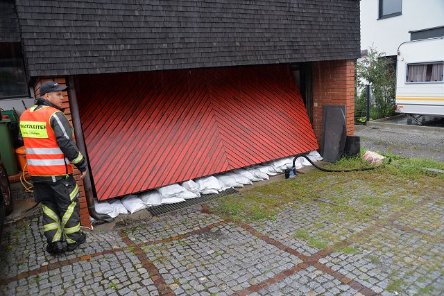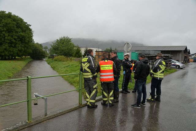 Die Einsatzstelle wurde angefahren und erkundet. Zur Verhinderung eines Wassereintritts wurden Sandsäcke zur Verfügung gestellt und die Bewohner zur entsprechenden Verwendung angeleitet. Die Feuerwehr Gisingen war mit einem Fahrzeug und drei Mann ca. 45 Minuten am Einsatz beteiligt.