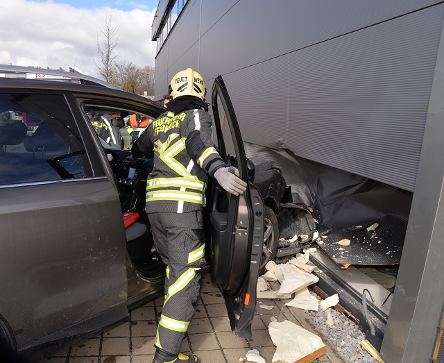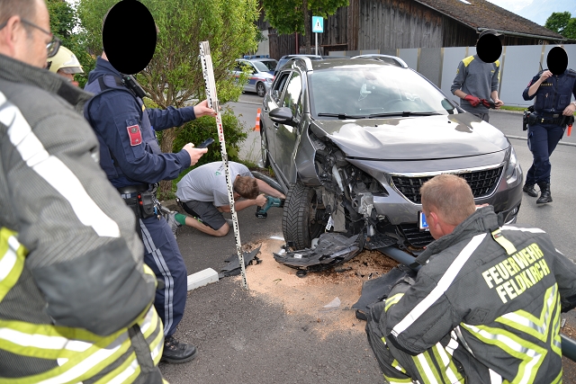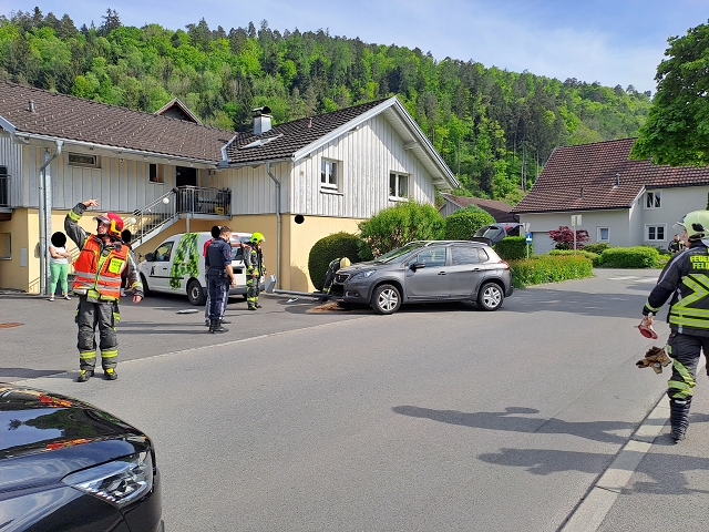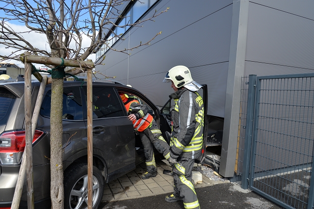 Die Feuerwehr Gisingen rückten mit drei Fahrzeugen (KDOF, LFB, TLF) und 18 Mann zum Einsatz aus. Auf Grund eines gesundheitlichen Gebrechens kam der PKW-Lenker von der Fahrbahn ab und touchierte frontal die Gebäudefassade. Der Fahrer war zum Unfallzeitpunkt alleine im Fahrzeug und erlitt Verletzungen unbekannten Grades, er wurde zur weiteren Behandlung in das Krankenhaus eingeliefert. Am PKW entstand Totalschaden und auch die Gebäudefassade wurde in Mitleidenschaft gezogen.