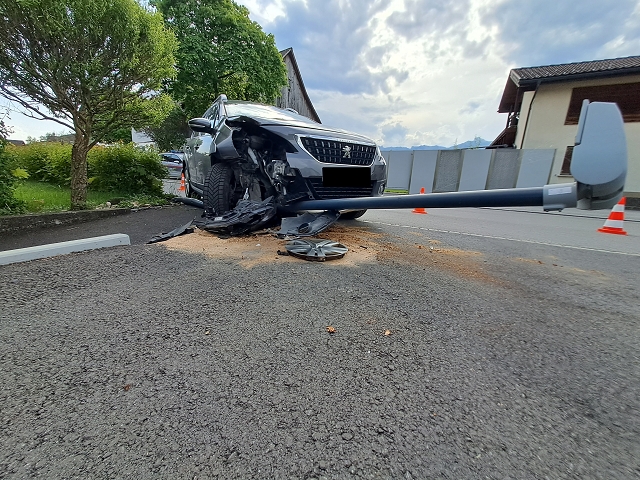 Ein Fahrzeuglenker verlor vermutlich auf Grund eines medizinischen Gebrechens die Herrschaft über den von ihm gelenkten PKW und geriet darum rechtsseitig von der Straße ab. Er touchierte eine Laterne und kam schließlich im Bereich einer Hauszufahrt zum Stillstand.