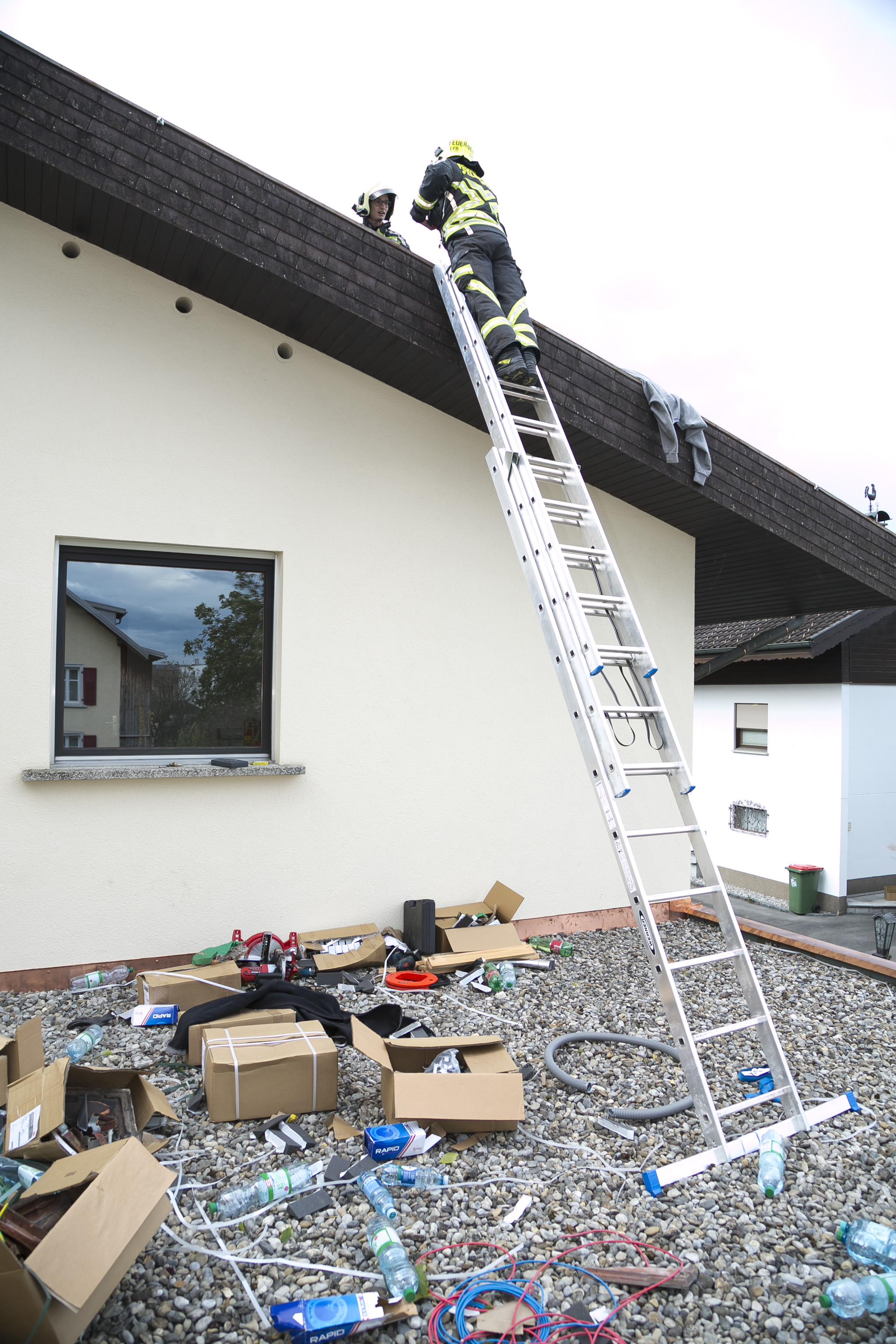 Über die Rettungs- und Feuerwehrleitstelle wurde ein verzweifelter Wohnungsmieter an den Kommandanten der Feuerwehr Gisingen verbunden. Der Bewohner hatte sich durch ein Missgeschick selbst aus der Wohnung ausgesperrt. Im Rahmen des Bürgerdienstes gelangten wir über eine Leiter auf den Balkon und konnten von dort durch eine offene Balkontüre in die Wohnung. Die zugefallene Türe wurde von innen geöffnet.