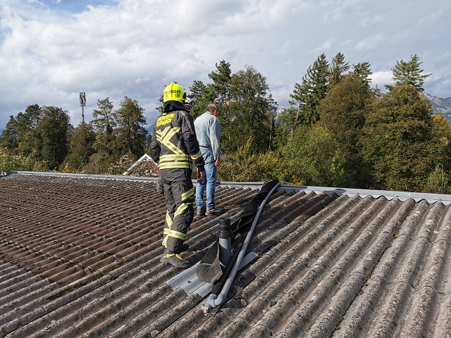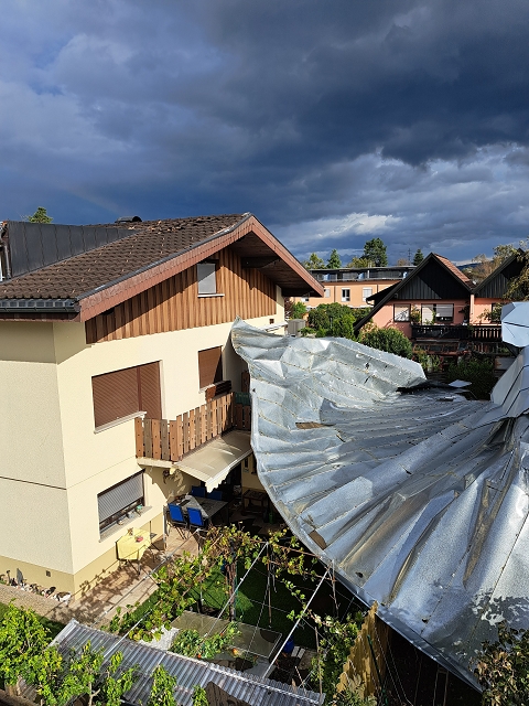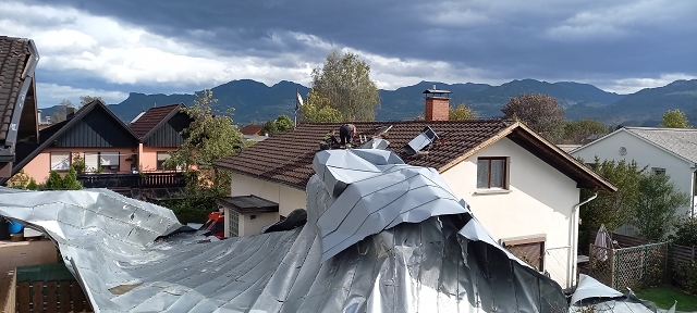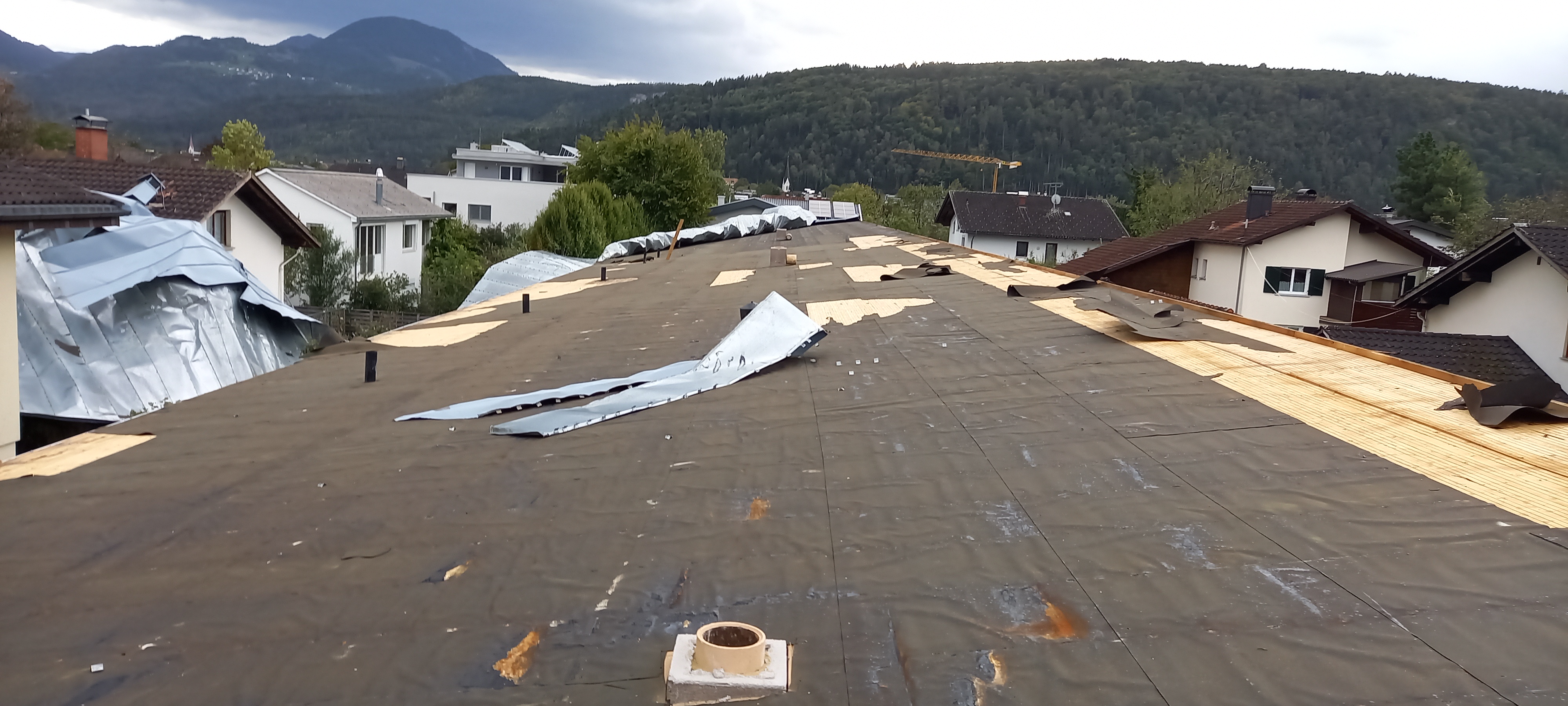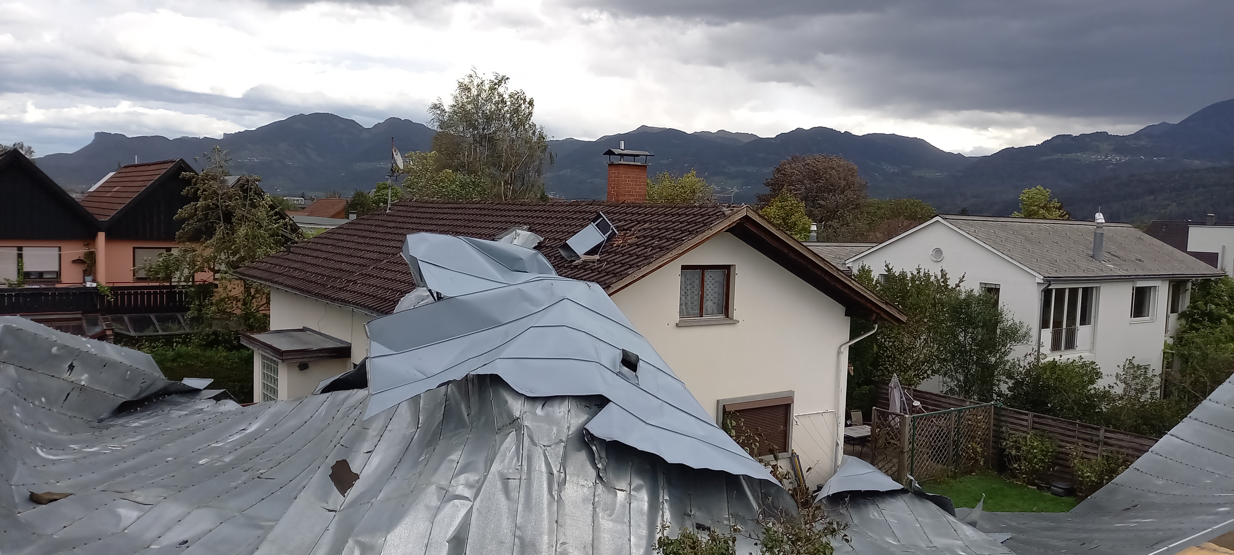 t1, Feldkirch-Gisingen, Am Oberen Riegel > Sturmschaden, Blechdach löst sich