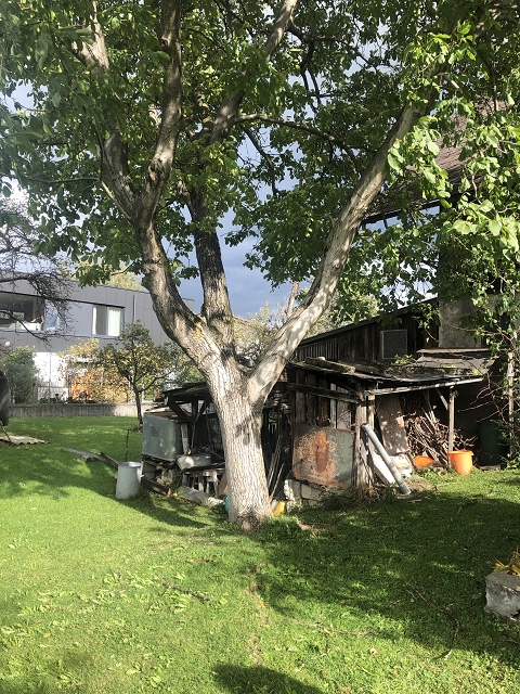 t1, Feldkirch-Gisingen, Bifangstraße > Baum droht auf Wohnhaus zu stürzen