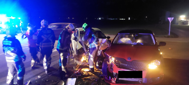 Zwei Fahrzeuge kollidierten im Kurvenverlauf der ampelgeregelten Kreuzung frontal miteinander, was erhebliche Sach- und Personenschäden zur Folge hatte. Bis zum Eintreffen des Rettungsdienstes wurden die Verletzten durch uns erstversorgt und betreut. Zudem war unsere Hauptaufgabe das Binden der auslaufenden Betriebsmittel, die Verkehrsregelung und Umleitung sowie die Schaffung eines Zugangs für den Notarzt mittels hydr. Rettungsgerät über die hintere Beifahrertüre.