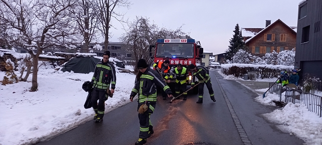 Der vergangene Samstag, 01.04.2023, brachte um 10:16 Uhr den elften Einsatz für die Feuerwehr Feldkirch Gisingen. 23 Einsatzkräfte rückten mit drei Fahrzeugen zu einem technischen Einsatz aus: t1, Feldkirch-Gisingen, Fabrikweg > Ölspur, Polizei vor Ort