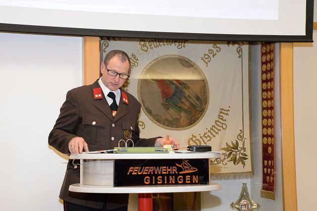 Neben den üblichen Tagesordnungspunkten wie dem Totengedenken, den ausführlichen Tätigskeitsberichten des Kommandanten und des Leiters der Feuerwehrjugend sowie dem Kassabericht des Kassiers, stand die Versammlung im Zeichen von Neuaufnahmen, Beförderungen und Ehrungen. Kommandant Gerhard Tschann ließ mit einem statistischen Rückblick über das vergangene Jahr, in welchem die Feuerwehr Gisingen bei 616 Tätigkeiten, davon 62 Einsätze, mit insgesamt 8.783 Arbeitsstunden leistete, zurückblicken.