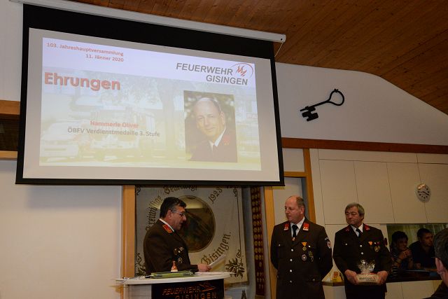 Abschließend wurden die Wünsche der Ehrengäste für ein gutes und vor allem unfallfreies Jahr 2020 von Kommandat Gerhard Tschann erwidert und die 103. Jahreshauptversammlung der Feuerwehr Gisingen mit den Worten „Gott zur Ehr – dem nächsten zur Wehr“ geschlossen!