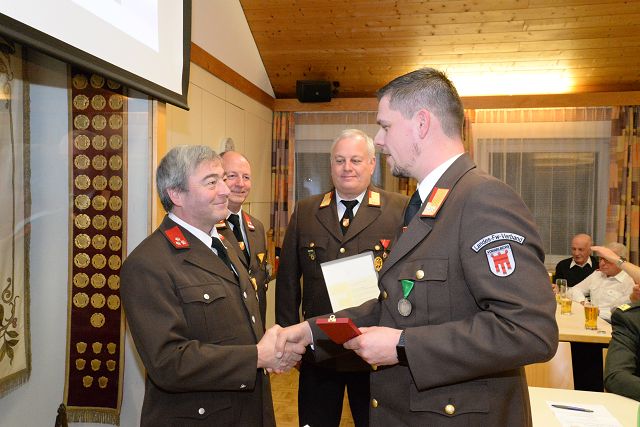 Wiederum stellte die Jahreshauptversammlung den würdigen Rahmen dar, um langjährige Mitgleder zu ehren. So konnte am vergangenen Samstag unser langjähriges Mitglied HFM Walter Allgäuer für 40 Jahre Mitgliedschaft in unserer Wehr die Feuerwehrmedaille in Silber von Bezirksvertreter Markus Süß entgegennehmen. Auch seitens der Stadt Feldkirch ehrte Bürgermeister Matt den Jubilar. Weiters wurde an Oliver Hammerle, ein verdienter Wehrmann der Feuerwehr Gisingen, die Verdienstmedaille 3. Stufe des Österreichischen Bundesfeuerwehrverbandes für besondere Tätigkeiten und vorbildhaftes Engagement verliehen.