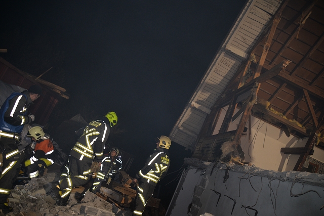 Die Erkundung des Einsatzleiters ergab, dass bei Abrissarbeiten an einem angrenzen Gebäudeteil ein Teil des Wohngebäudes einstürzte und sich ein Brand entwickelte. Mehrere Arbeiter konnten sich nicht mehr rechtzeitig in Sicherheit bringen und wurden von Trümmern verschüttet. Der Großteil der Bewohner des Wohnhauses konnte sich nicht mehr vor den Flammen in Sicherheit bringen und wurde im Gebäude eingeschlossen.