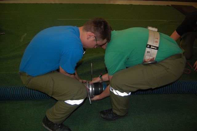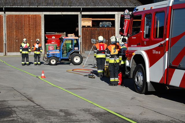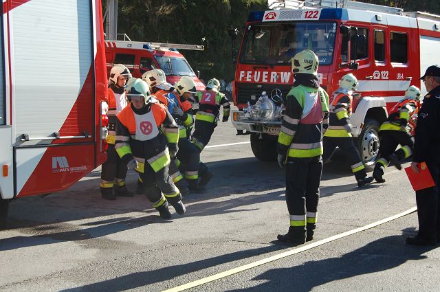 Um das zu verhindern, wird die Fahrzeughalle jeden Montag kurzerhand zum Wettkampfplatz umgebaut. Mit rutschfesten Unterlagen und genügend Gewichten am Rand des Teppichs, auf welchen die nötigen Markierungen aufgedruckt sind, hält dieser auch in der rutschigen Fahrzeughalle mehr oder weniger gut. So können wir auch bei widrigen Witterungsverhältnissen entsprechend trainieren und hoffentlich bei den Feuerwehrleistungsbewerben 2015 in Andelsbuch die begehrten Leistungsabzeichen der Stufe Silber entgegennehmen.