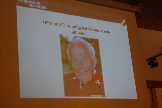 Eine ganz besondere Ehre gebührte auch unserem Ehrenmitglied Herrn Armin Weber, welcher für 60 Jahre im Feuerwehrdienst geehrt werden konnte. Weiters wurde Herr Hermann Meier zum Ehrenmitglied der Feuerwehr Gisingen ernannt und Sonja Frick durfte für 20 Jahre Floirianiwirtin ausgezeichnet werden.