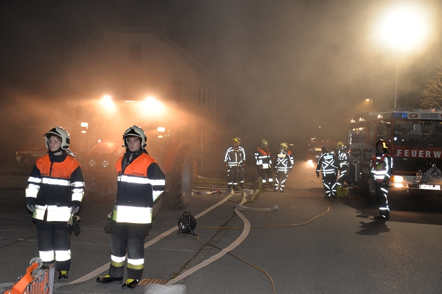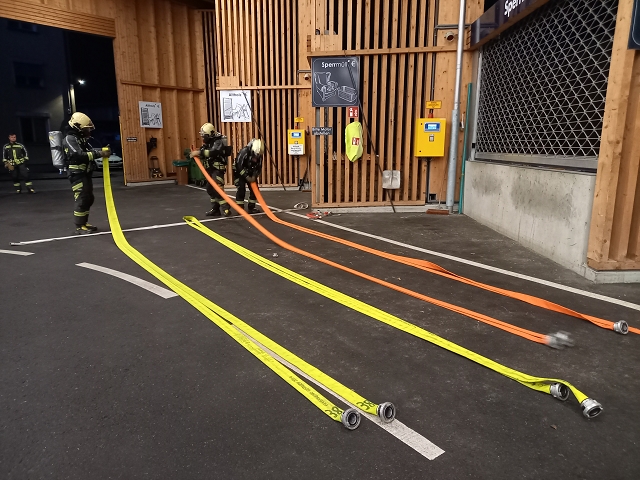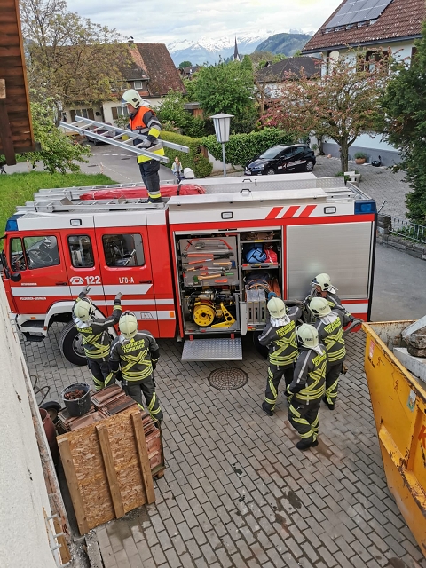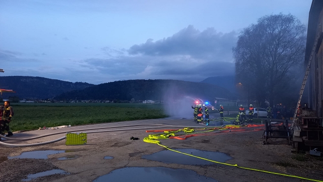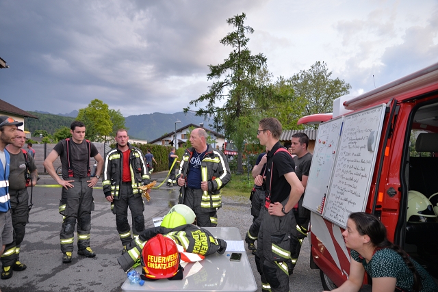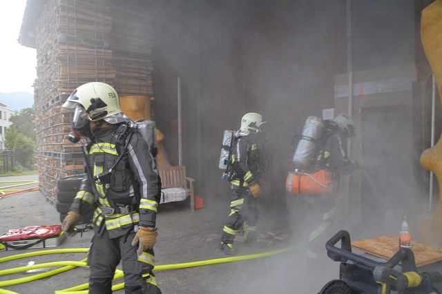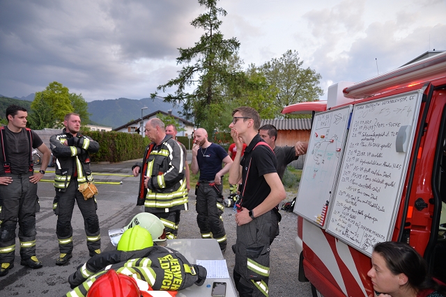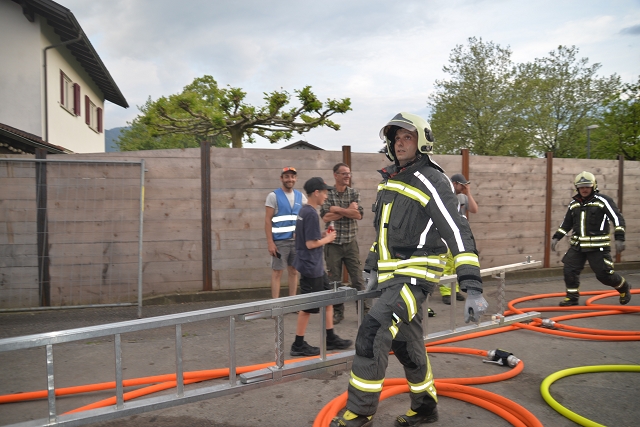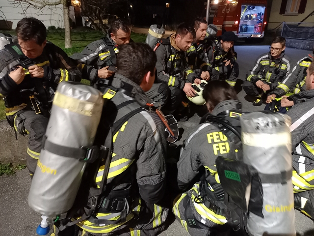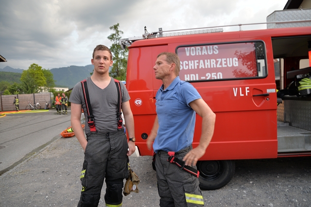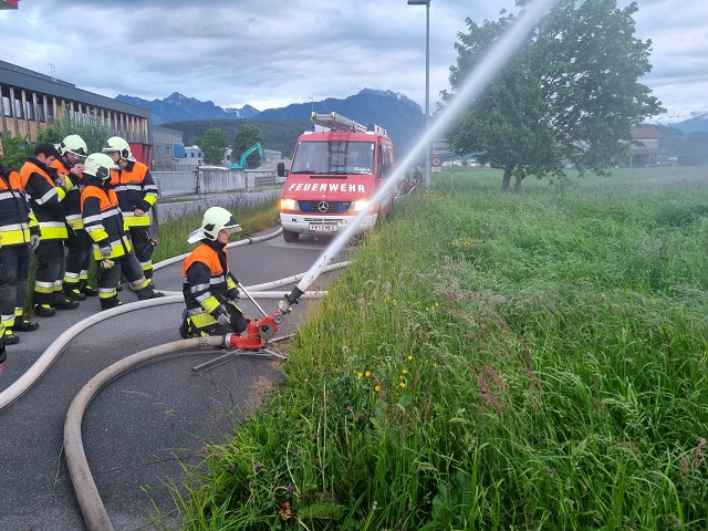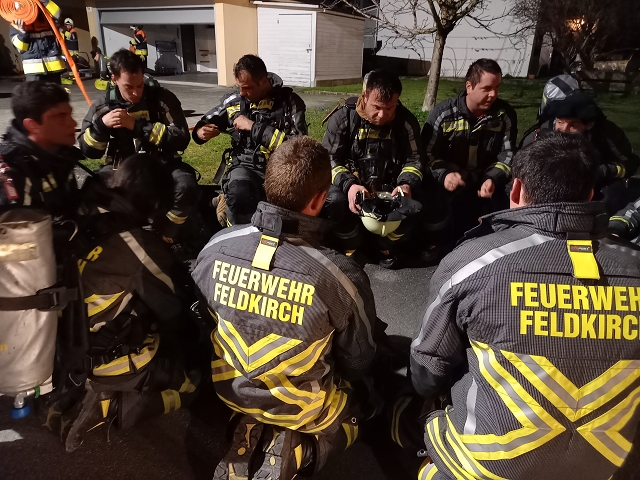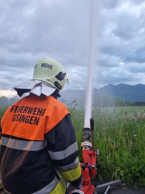 Die Feuerwehr Gisingen rückte zur Zugsübung mit dem gesamten Löschzug (KDOF, TLF, LFB und VF inkl. TS-Anhänger) sowie 50 Einsatzkräften zum Übungsobjekt aus. Der Brand des Stallgebäudes wurde durch den Einsatz von künstlichem Rauch realistisch dargestellt. Die größten Herausforderungen für den Einsatzleiter bestanden in der Herstellung einer entsprechenden Wasserversorgung und dem effektivsten Einsatz der zur Verfügung stehenden Atemschutztrupps. Speziell die Zubringerleitung zum Übungsobjekt bereitete den Maschinisten Probleme, denn der Durchfluss und Druck des nächstgelegenen Hydranten war alles andere als ideal. Eine wertvolle Erkenntnis, die Übungen immer wieder ans Tageslicht bringen und in diesem Fall weitere Abklärungen mit dem Wasserwerk der Stadtwerke Feldkirch als Folge haben, um das Problem ehestmöglich zu lösen, oder die Erstellung von alternativen und objektbezogenen Einsatzplänen einzuleiten.